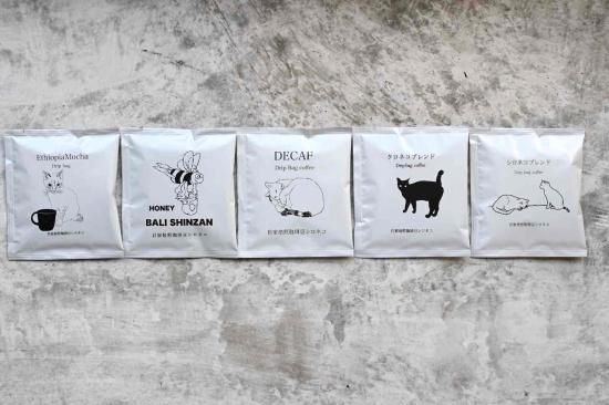 箱の中にはアソートで5種類のドリップバッグコーヒーが入っています。